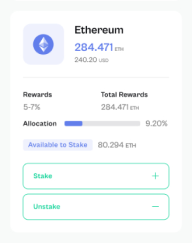 Stake assets in a non-custodial wallet with complete control over the keys. The dashboard allows for easy management, tracking, and collection of rewards.