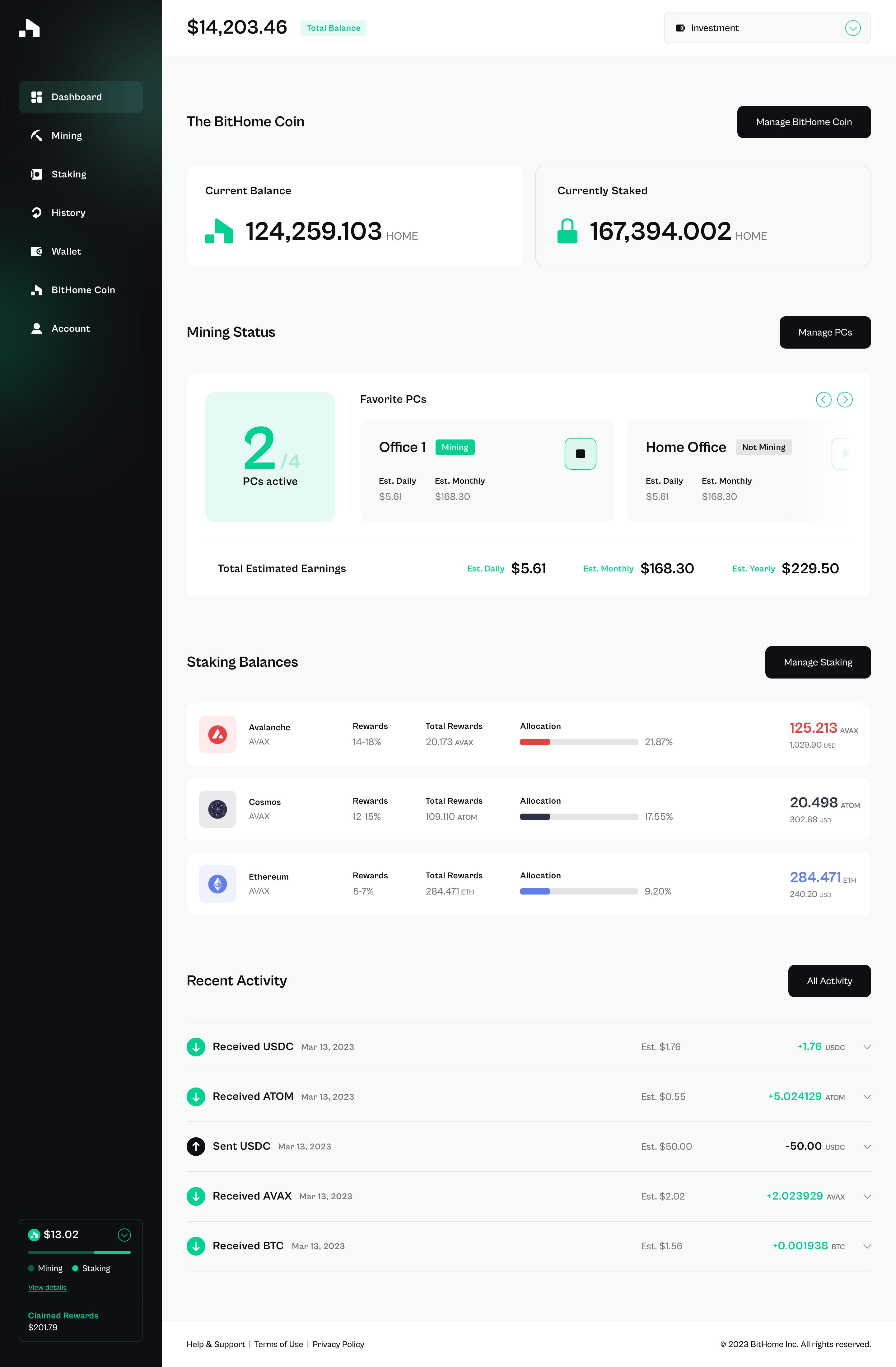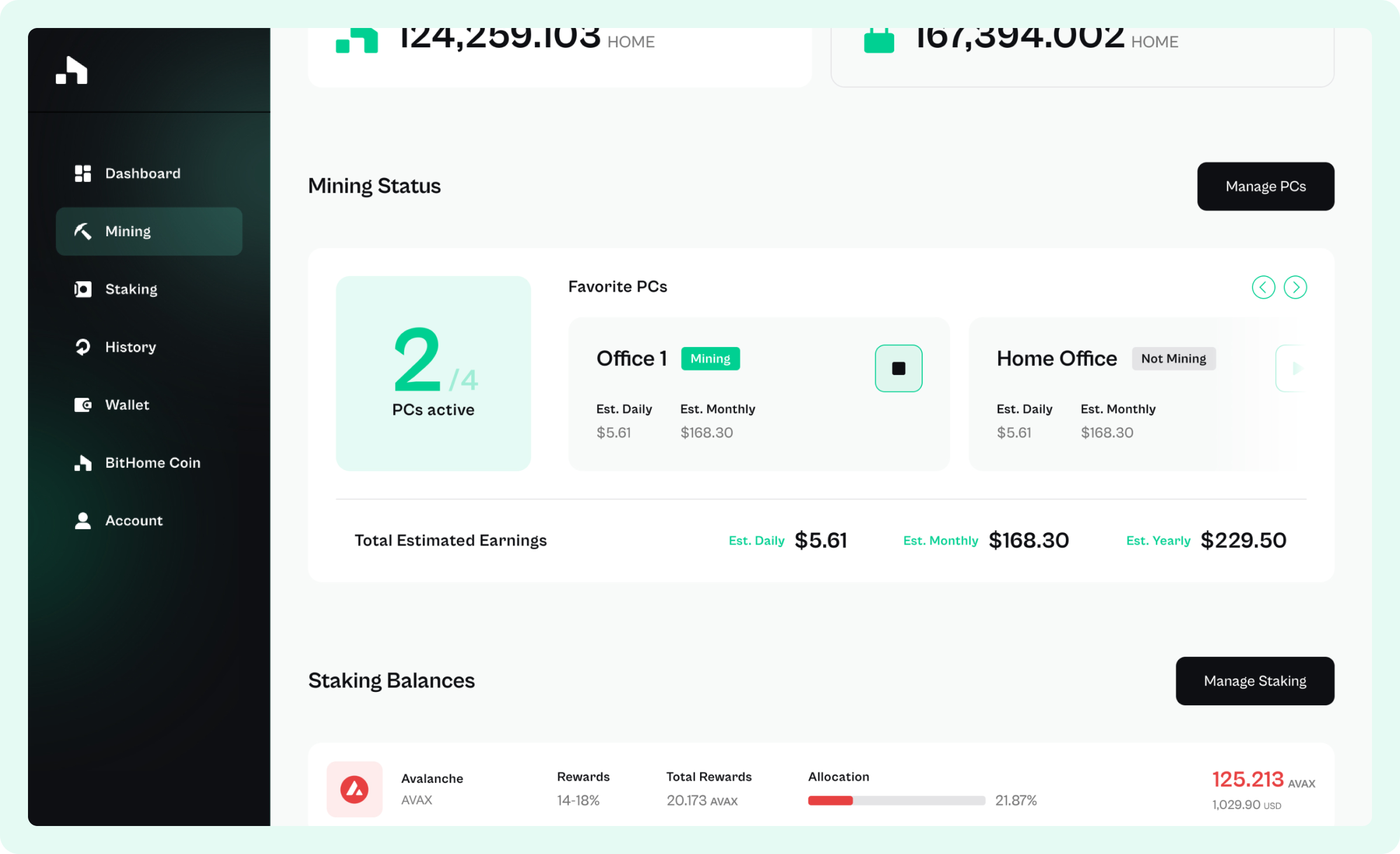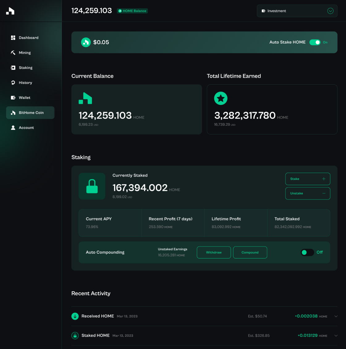 Receive HOME Token as a bonus on top of mining and staking earnings. Stake HOME for extra rewards.