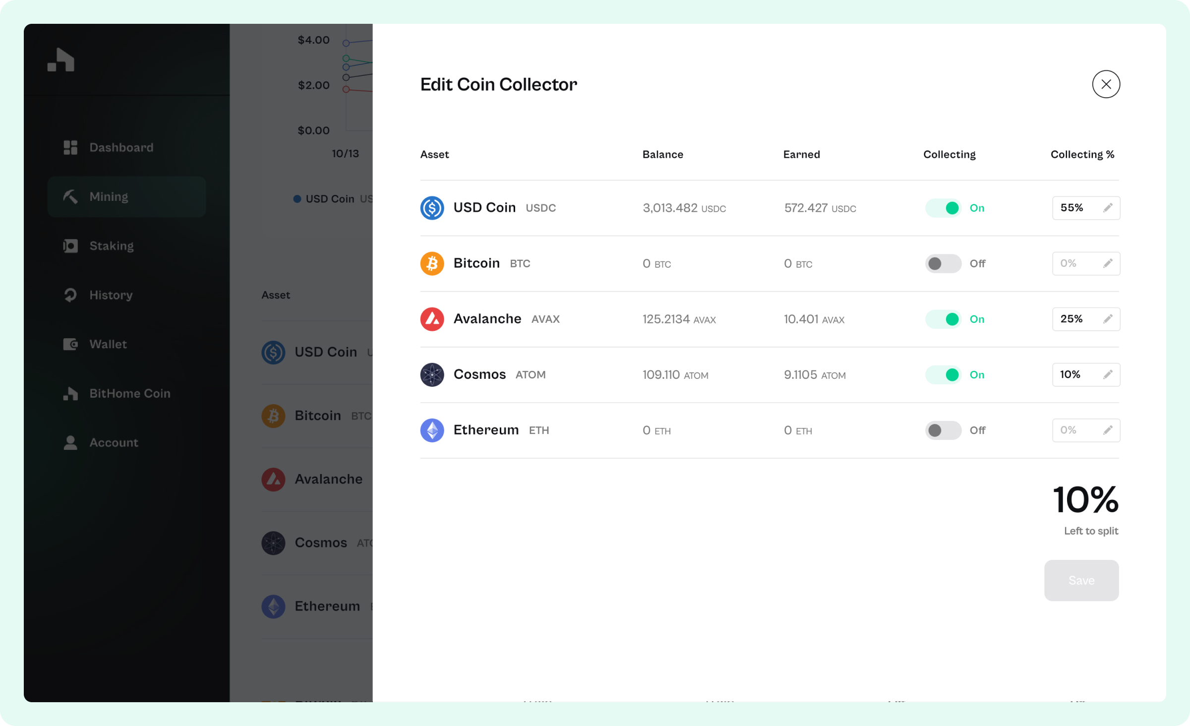 Tailor your mining efforts to build a portfolio that suits your goals. Select the cryptos you earn to maximize results. Mine the most profitable crypto for your system and collect the best cryptos for your portfolio. Stake earned assets for additional yields.
