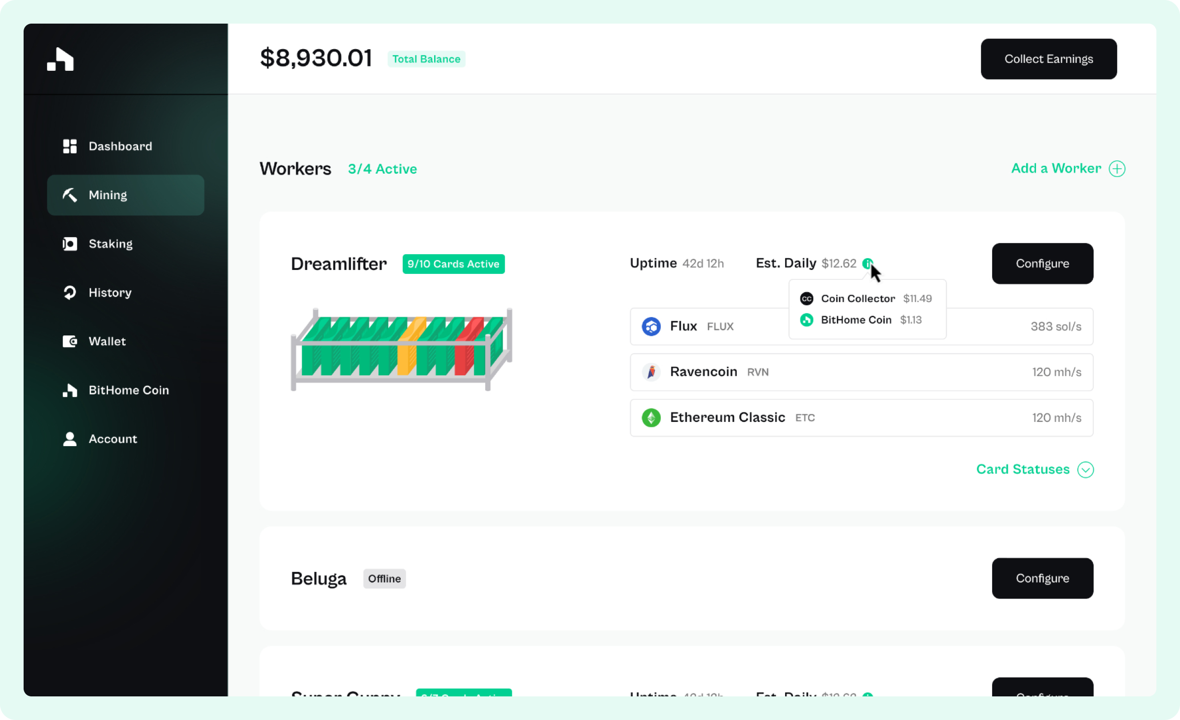 Simple powerful software enabling mining with just a few clicks. Earn the cryptos you wish to earn. Boost earnings with HOME Token. Manage your machines with the state-of-the-art web dashboard.